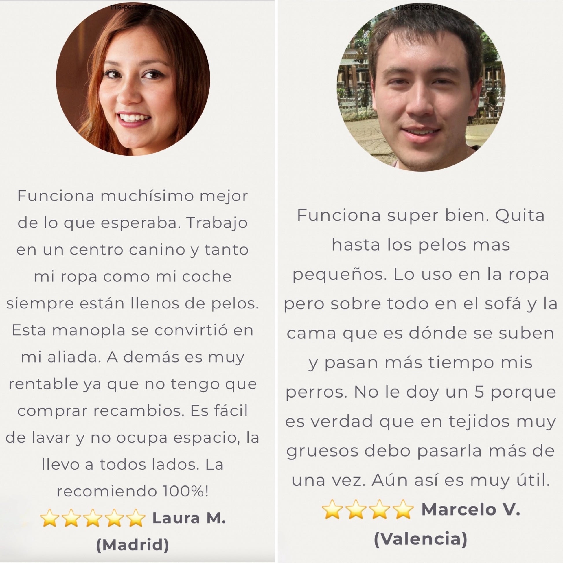 Funciona muchísimo mejor de lo que esperaba. Trabajo en un centro canino y tanto mi ropa como mi coche siempre están llenos de pelos. Esta manopla se convirtió en mi aliada. A demás es muy rentable ya que no tengo que comprar recambios. Es fácil de lavar y no ocupa espacio, la llevo a todos lados. La recomiendo 100%!